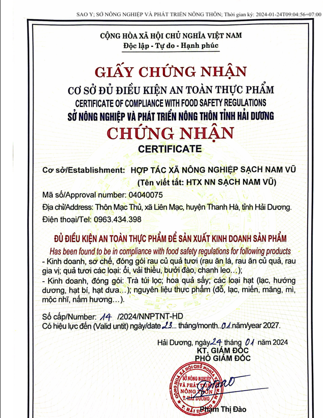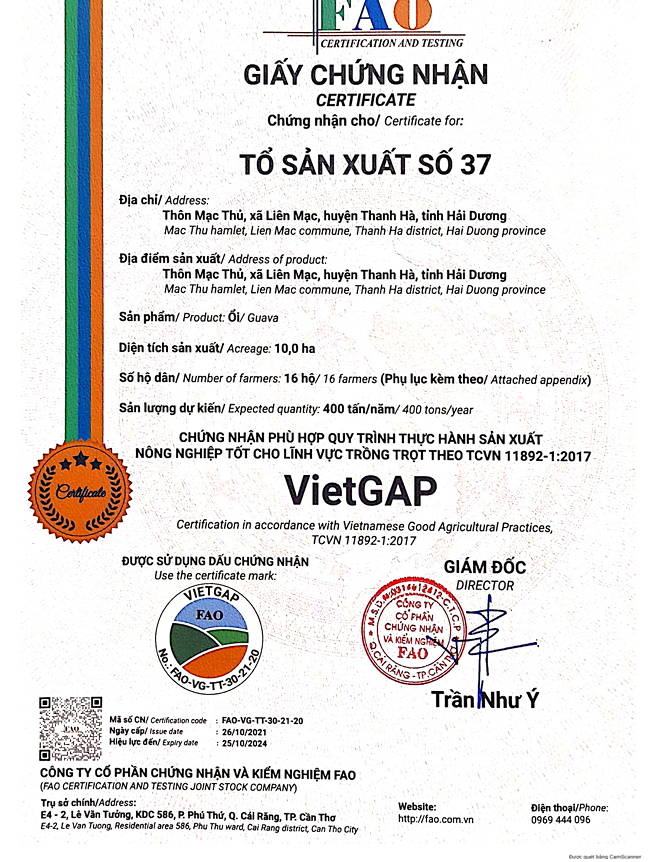 Chứng chỉ : VietGap